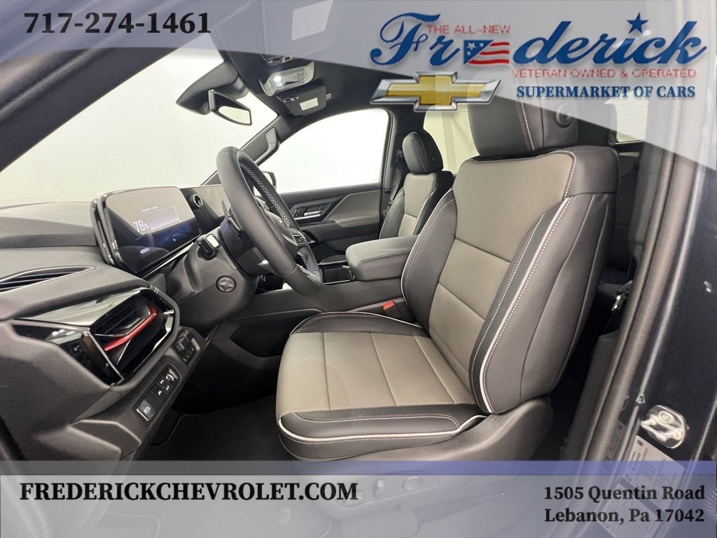 Comfort and Convenience Package (Bose Premium 7-Speaker Audio System, Driver 4-Way Power Lumbar Seat Adjuster, Driver and Front Passenger Ventilated Seats, Driver Memory, Front Passenger 4-Way Power Lumbar Seat Adjuster, Front Passenger 8-Way Power Seat Adjuster, Heated Rear Outboard Passenger Cushion, Outside Heated Power-Adjustable Mirrors, and Power Tilt and Telescopic Steering Column with Memory), Plus Package (7.2 KW AC Power Split Phase Offboarding Power, Bed Mounted Power Outlet 240-Volt, Bed Mounted Power Outlets (4) 120-Volt, Manual Tailgate Function with EZ Lift, and Multi-Flex Tailgate), Preferred Equipment Group 2TR (Extended Range Battery Pack, Front Passenger 4-Way Manual Seat Adjuster, and LED Reflective Windshield Collision Alert), 11.63 Axle Ratio, 4-Wheel Disc Brakes, 6 Speakers, 6-Speaker Audio System Feature, 8-Way Power Driver Seat Adjuster, ABS brakes, Air Conditioning, Alloy wheels, AM/FM radio: SiriusXM with 360L, Auto High-beam Headlights, Auto-dimming Rear-View mirror, Automatic temperature control, Brake assist, Delay-off headlights, Driver 2-Way Power Lumbar Seat Adjuster, Driver door bin, Driver vanity mirror, Dual front impact airbags, Dual front side impact airbags, Electronic Stability Control, Emergency communication system: OnStar, Evotex Seat Trim, Four wheel independent suspension, Front anti-roll bar, Front Bucket Seats, Front Center Armrest w/Storage, Front dual zone A/C, Front reading lights, Fully automatic headlights, Garage door transmitter, Heated door mirrors, Heated Front Driver and Passenger Seats, Heated front seats, Heated steering wheel, High Stance Suspension, Low tire pressure warning, Navigation System, Occupant sensing airbag, Outside temperature display, Overhead airbag, Overhead console, Panic alarm, Passenger door bin, Passenger vanity mirror, Power door mirrors, Power driver seat, Power steering, Power windows, Radio data system, Radio: 17.7 Diagonal Advanced Color LCD Display, Rain sensing wipers, Rear reading lights, Rear step bumper, Rear window defroster, Remote keyless entry, Security system, SiriusXM with 360L Trial Subscription, Speed control, Speed-sensing steering, Split folding rear seat, Sport steering wheel, Steering wheel mounted audio controls, Telescoping steering wheel, Tilt steering wheel, Traction control, Trip computer, Variably intermittent wipers, and Wheels: 18 x 8.5