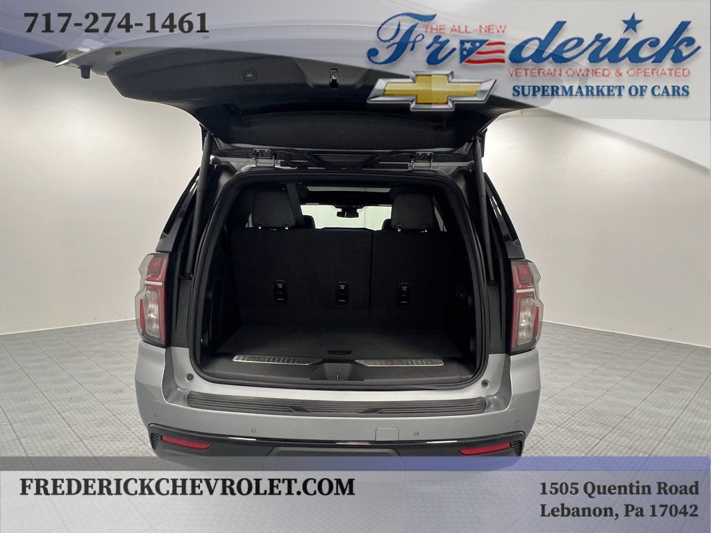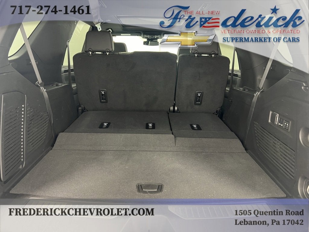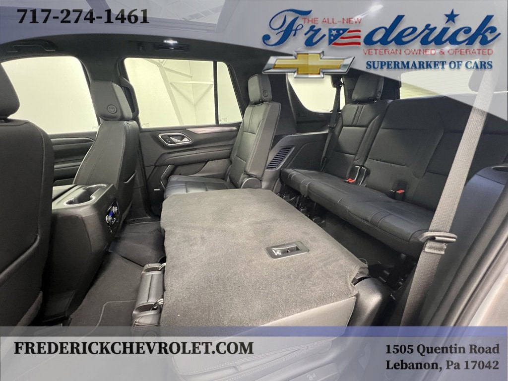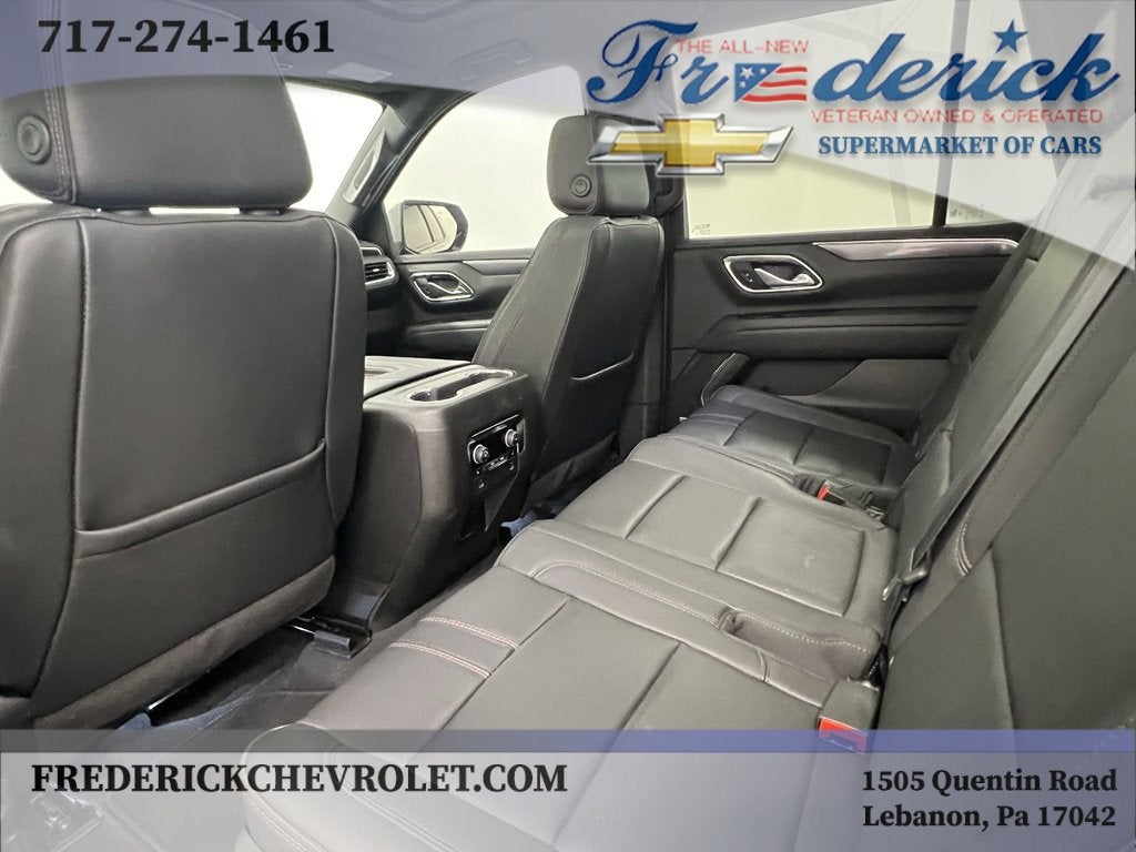 We have included a list of the standard and optional equipment below:Driver Alert Package (Lane Change Alert w/Side Blind Zone Alert and Rear Cross Traffic Alert), License Plate Front Mounting Package, Luxury Package (2nd Row Pwr Release 60/40 Split-Folding Bench Seat, 3rd Row 60/40 Power-Folding Split-Bench Seat, Adaptive Cruise Control, Enhanced Automatic Emergency Braking, HD Surround Vision, Heated 2nd Row Outboard Seats, Heated Steering Wheel, Memory Settings, Outside Heated Power-Adjustable Mirrors, Power Tilt & Telescopic Steering Column, and Rear Pedestrian Alert), Preferred Equipment Group 1SP (1st & 2nd Row Color-Keyed Carpeted Floor Mats, Auto-Dimming Inside Rear-View Mirror, Bose 9-Speaker Stereo Audio System Feature, Bright Front & Rear Door Sill Plates, Color-Keyed Carpeting Floor Covering, Driver & Front Outboard Passenger Airbags, Enhanced Driver Information Center, Floor Console w/Storage Area, Hands-Free Rear Power Programmable Liftgate, LED Daytime Running Lamps, Memory Settings for Driver, Remote Start, SiriusXM w/360L, Universal Home Remote, Wireless Charging, and Wrapped Steering Wheel), 4WD, Jet Black/Victory Red Leather, Navigation System, 10-Way Power Driver & Passenger Seat Adjusters, 3.23 Rear Axle Ratio, 3rd row seats: split-bench, 4-Wheel Disc Brakes, 9 Speakers, ABS brakes, Air Conditioning, Alloy wheels, AM/FM radio: SiriusXM with 360L, Apple CarPlay/Android Auto, Auto High-beam Headlights, Auto-dimming Rear-View mirror, Automatic temperature control, Brake assist, Bumpers: body-color, Compass, Delay-off headlights, Driver door bin, Driver vanity mirror, Dual front impact airbags, Dual front side impact airbags, Dual-Pane Power Panoramic Sunroof, Electronic Stability Control, Emergency communication system: OnStar and Chevrolet connected services capable, Four wheel independent suspension, Front anti-roll bar, Front Bucket Seats, Front Center Armrest, Front dual zone A/C, Front High-Back Reclining Bucket Seats, Front reading lights, Fully automatic headlights, Garage door transmitter, Heated door mirrors, Heated Driver & Front Passenger Seats, Heated front seats, Illuminated entry, Infotainment Display, Low tire pressure warning, Memory seat, Occupant sensing airbag, Outside temperature display, Overhead airbag, Overhead console, Panic alarm, Passenger door bin, Passenger vanity mirror, Perforated Leather Seat Trim, Power door mirrors, Power driver seat, Power Liftgate, Power passenger seat, Power steering, Power windows, Premium audio system: Chevrolet Infotainment 3 Premium, Premium Smooth Ride Suspension, Radio: Chevrolet Infotainment 3 Premium System, Rain sensing wipers, Rear air conditioning, Rear anti-roll bar, Rear reading lights, Rear seat center armrest, Rear window defroster, Rear window wiper, Remote keyless entry, Roof rack: xxxxxx, Security system, Set of 4 Wheel Locks (LPO), Speed control, Speed-sensing steering, Split folding rear seat, Spoiler, Steering wheel mounted audio controls, Tachometer, Telescoping steering wheel, Tilt steering wheel, Traction control, Trip computer, Variably intermittent wipers, Voltmeter, and Wheels: 22 x 9 Bright Machined.